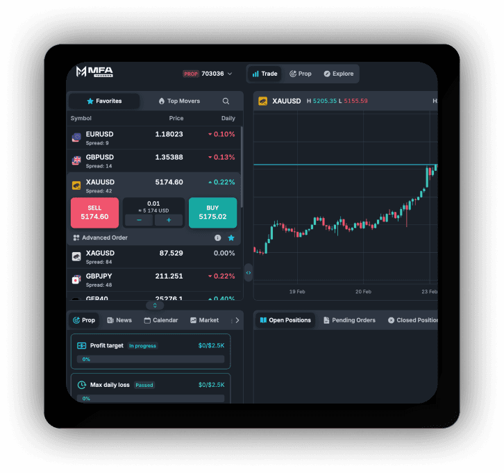 Wykazuj się swoimi umiejętnościami handlowymi, realizuj wszystkie cele handlowe i przejdź do konta MFA w ramach jednofazowego procesu oceny.